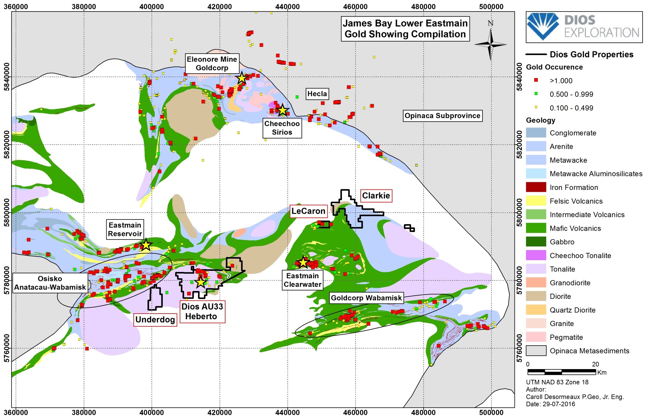 La découverte Heberto-Gold se trouve dans un secteur de 5 X 8 km très anomal en or en affleurement, à 50 km au sud de la mine Eleonore et 20 km à l’ouest du dépôt aurifère Clearwater.  Les actions émises en vertu du placement sont assujetties à une période de restriction de 4 mois et un jour,