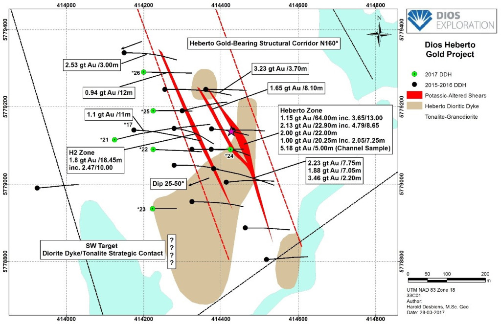 Dios’ management is pleased to report a minimum 2,000 metres of diamond drilling as a start on Heberto Gold and extents and on the Northeast structural targets.