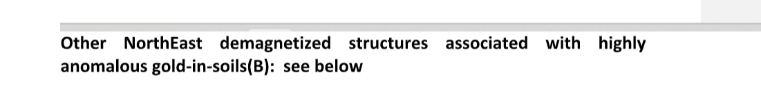 Gold targets from recent structural analysis of high-resolution magnetic survey completed on Au33 were uncovered (January 8, 2026 release) and some of them, such as the Northeast targets, are found to be associated with highly anomalous goldbearing B-soils, and highly anomalous goldbearing tills down-ice.