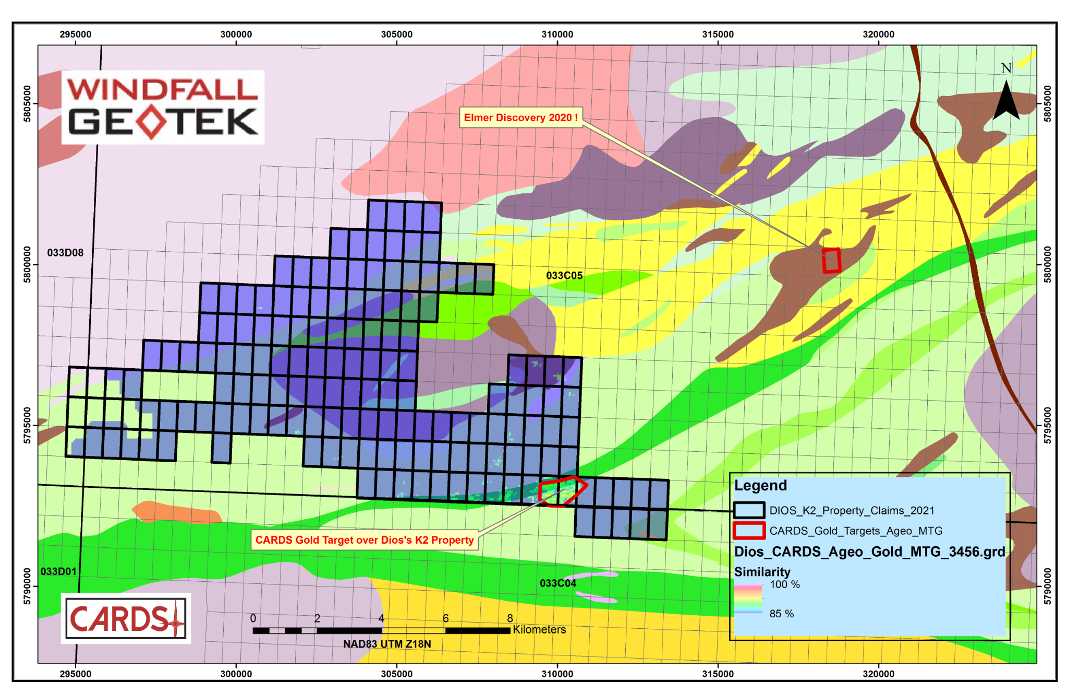 Windfall Geotek (TSX-V:WIN, OTC: WINKF), chef de file de l’application de l’Intelligence Artificielle (« IA ») et des techniques avancées d’extraction depuis 2005 dans le secteur minier, a fourni une cible d’intelligence artificielle pour l’or à Dios dans ce secteur. (comm. du 23 juin)