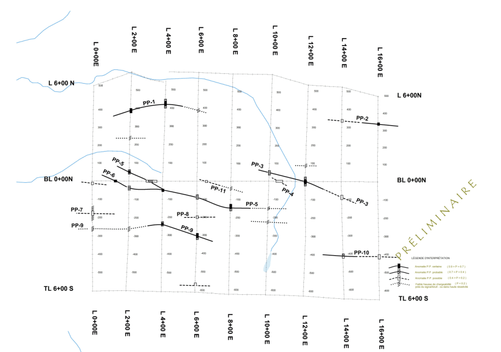 M.J. Girard, President of Dios, stated:« We are extremely pleased with these IP results and they are released, though preliminary, due to their major significance, specially in association with mineralized in situ rocks.«