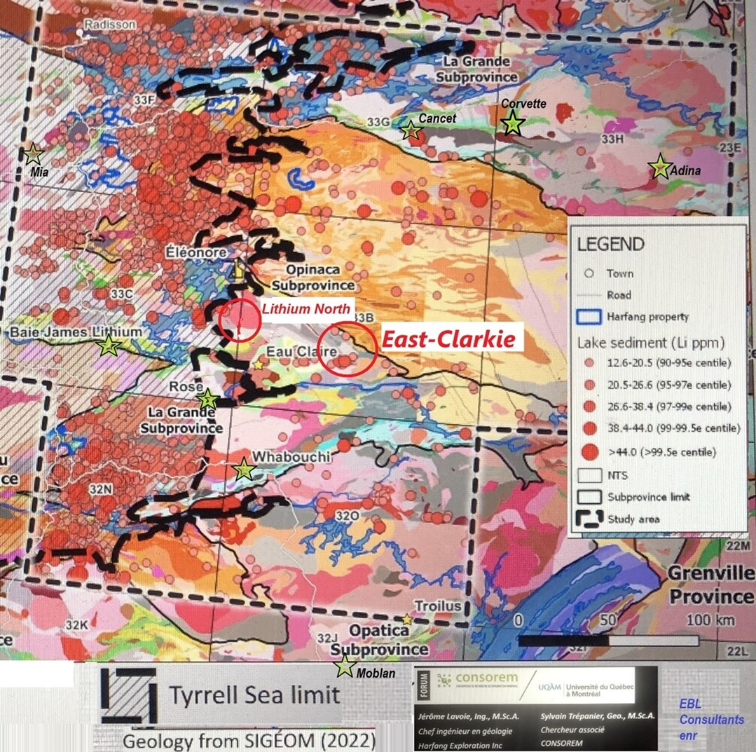 Les projets East-Clarkie et LeCaron renferment respectivement au moins 47 et 20 affleurements de pegmatites, tous associés à une signature géochimique caractéristique du lithium (voir comm. des 6 et 20 juin). Les résultats de l’exploration sur ces projets, de même que ceux sur Némiscau nord (comm. 20 octobre2022) seront publiés dès que disponibles.