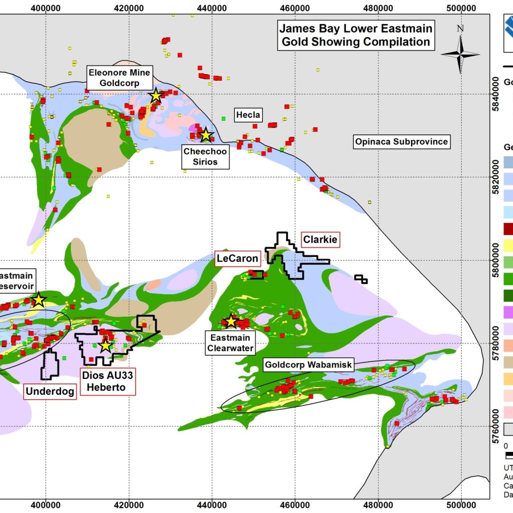 La découverte Heberto-Gold se trouve dans un secteur de 5 X 8 km très anomal en or en affleurement, à 50 km au sud de la mine Eleonore et 20 km à l’ouest du dépôt aurifère Clearwater. Les actions émises en vertu du placement sont assujetties à une période de restriction de 4 mois et un jour,